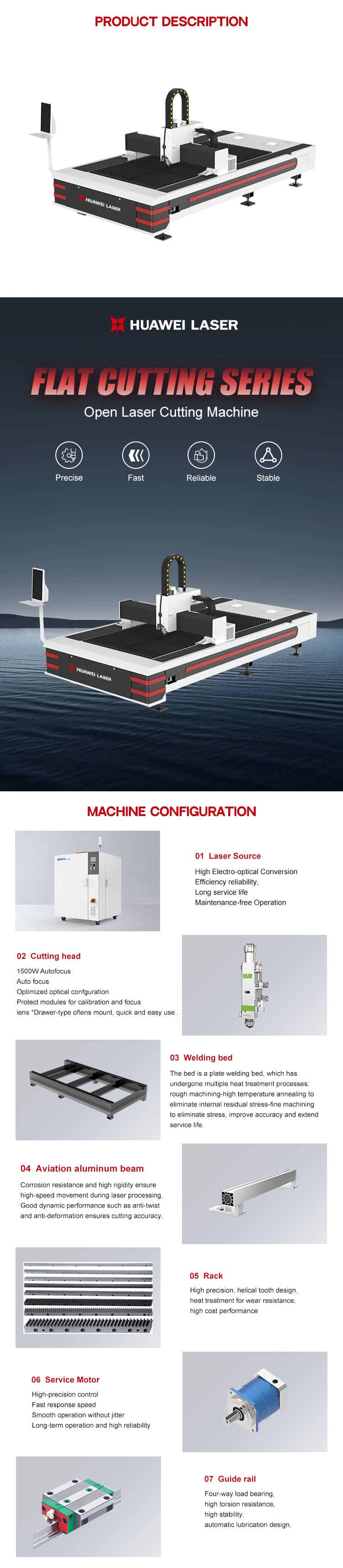 HUAWEI लेजर 6000W उच्च-दक्षता खुला प्रकार फाइबर लेजर काट्ने मेसिन छिटो, स्थिर, र सटीक काटन प्रदर्शन प्रदान गर्न डिजाइन गरिएको एक शक्तिशाली पाना धातु काटन समाधान हो।
