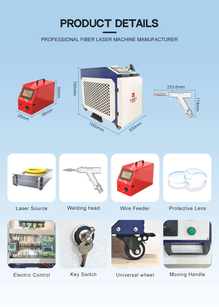 निर्माण कार्यका लागि अनुकूलित 1500W 2000W 3000W उच्च परिशुद्धता फाइबर लेजर वेल्डर इस्पात संरचना, धातु फ्रेम, पाइप, र निर्माण घटकहरूको सही र भरपर्दो वेल्डिंगको लागि डिजाइन गरिएको हो। यसको उच्च-शक्ति फाइबर लेजरले गहिरो प्रवेश, बलियो वेल्ड जोडहरू, र लगातार गुणस्तर प्रदान गर्दछ, निर्माण र पूर्वाधार परियोजनाहरूको माग आवश्यकताहरू पूरा गर्दछ। अनुकूलन योग्य कन्फिगरेसनहरू, स्थिर प्रदर्शन, र सटीक नियन्त्रणको साथ, यो वेल्डरले विभिन्न अन-साइट र कार्यशाला अनुप्रयोगहरूलाई समर्थन गर्दछ, दक्षता सुधार गर्दै, पुन: कार्य घटाउँदै, र निर्माण धातु निर्माणमा दीर्घकालीन स्थायित्व सुनिश्चित गर्दछ।